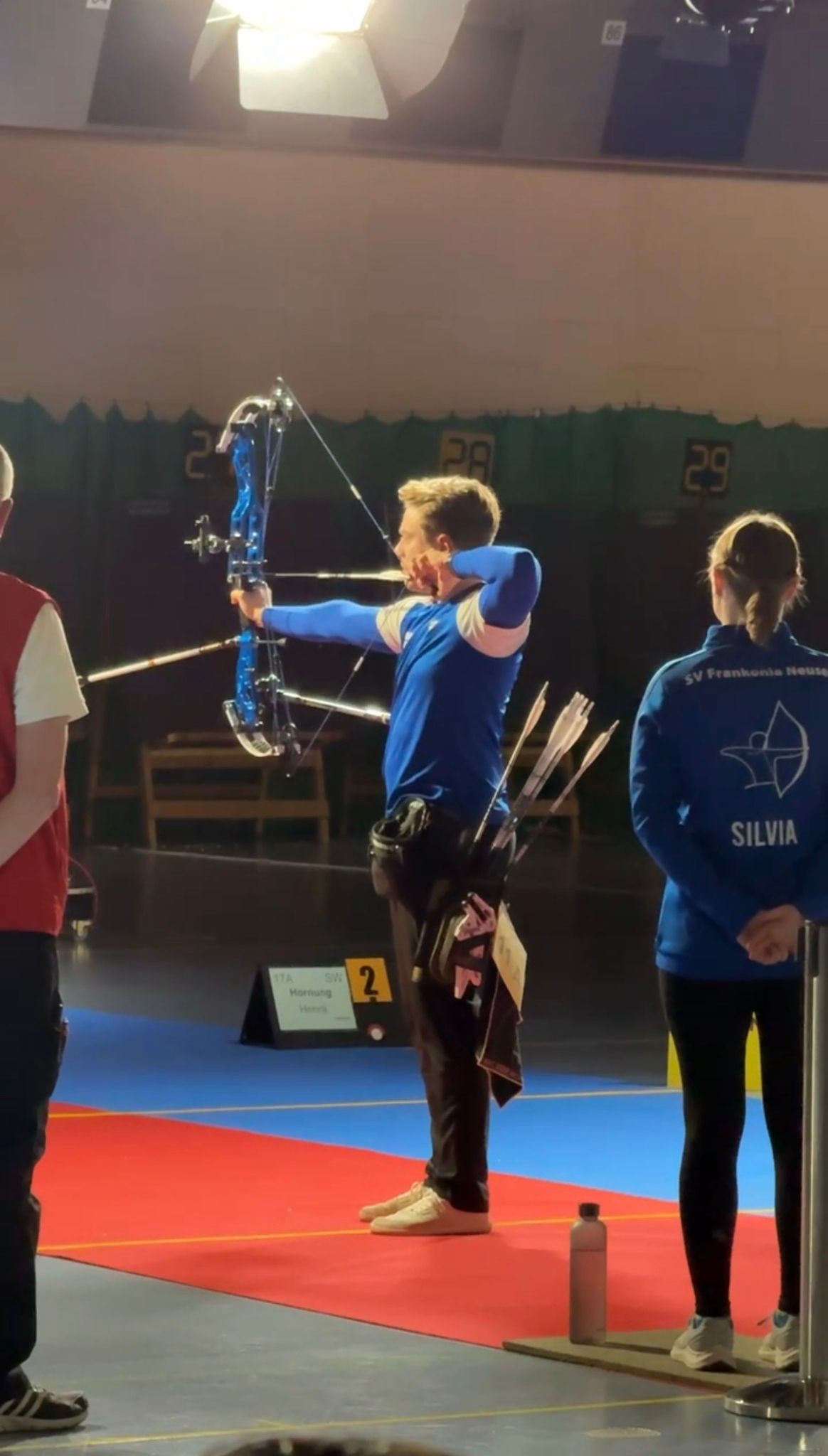 Schon in den Viertelfinals wurde es spannend. Silvia als Neuling hatte es gleich zu Beginn mit einer sehr erfahrenen Schützin zu tun. Leider musste sich Silvia im Viertelfinale geschlagen geben. Das schmälert ihre Leistung jedoch keineswegs: Bei ihrer ersten Teilnahme an der bayerischen Meisterschaft hat sie auf Anhieb die Finalrunde erreicht. Herzlichen Glückwunsch! Auch Antons Match war spannungsgeladen. Anton lag nach der vierten Passe noch zurück, schoss in der letzten Passe jedoch drei perfekte Pfeile, konnte das Match noch für sich entscheiden und zog ins Halbfinale ein.