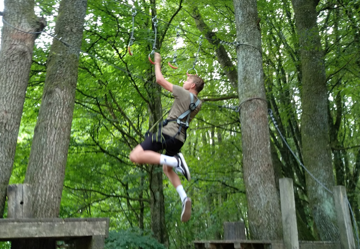 Die Jugendlichen und Junggebliebenen mussten in schwindelerregender Höhe Tarzansprünge überwinden, Kletterwände hochkraxeln, auf wackeligen Slacklines balancieren, sich an Ringen entlanghangeln, knifflige Spinnennetze durchqueren und viele weitere Herausforderungen bewältigen. Das geht natürlich nur mit Teamwork!